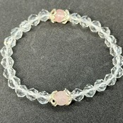 全て6㎜玉を使用。スターカットされた水晶をを使いローズクォーツとパーツビーズで細めのブレスに仕上げました。