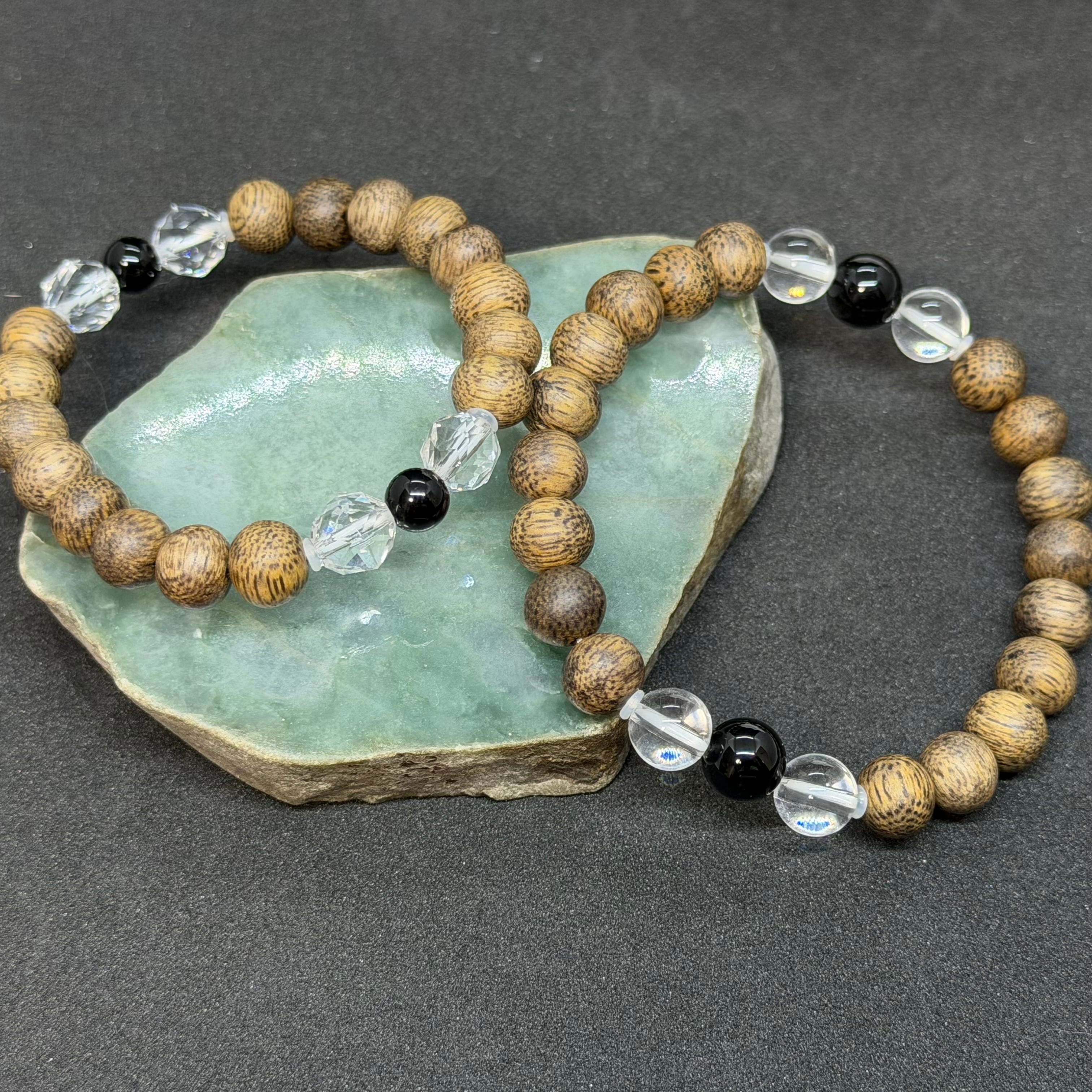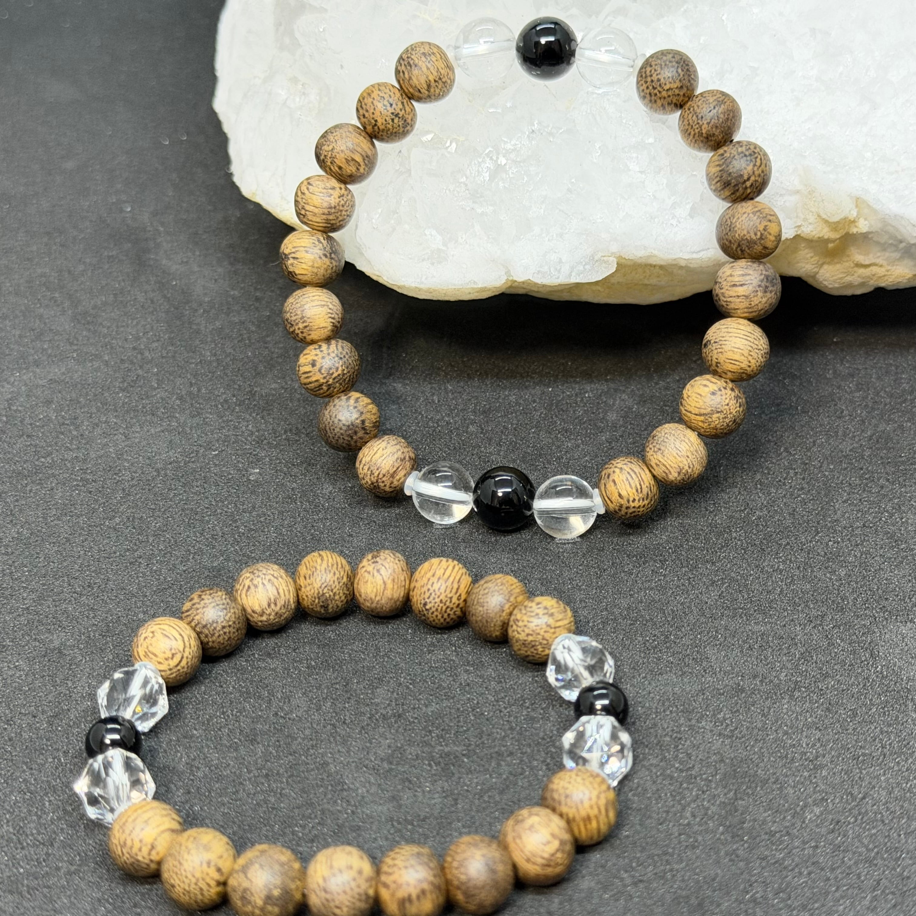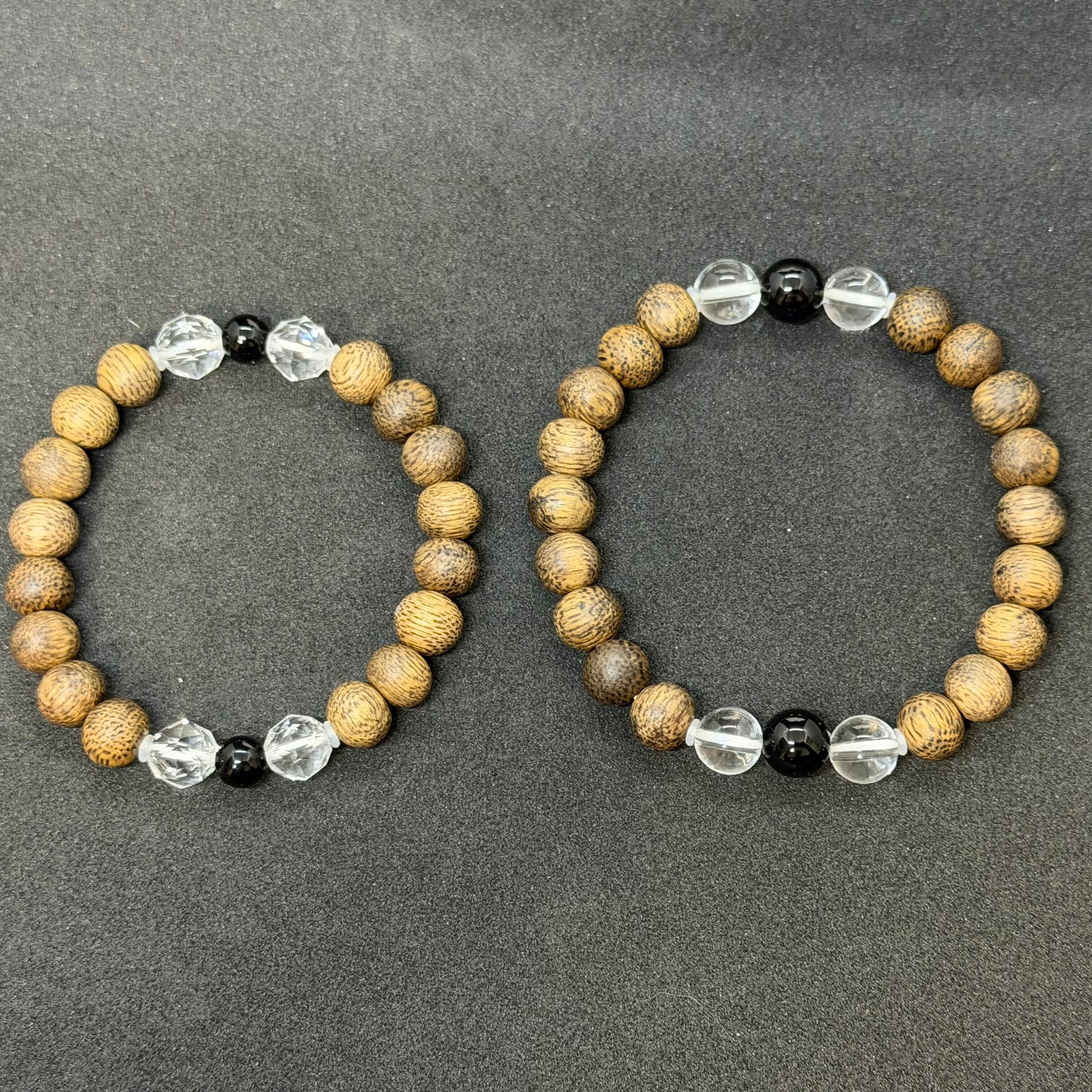 香木沈香の中でも高い評価を得るブルネイ産の沈香をメインに使用。アクセントにオニキスと水晶を組み合わせました。