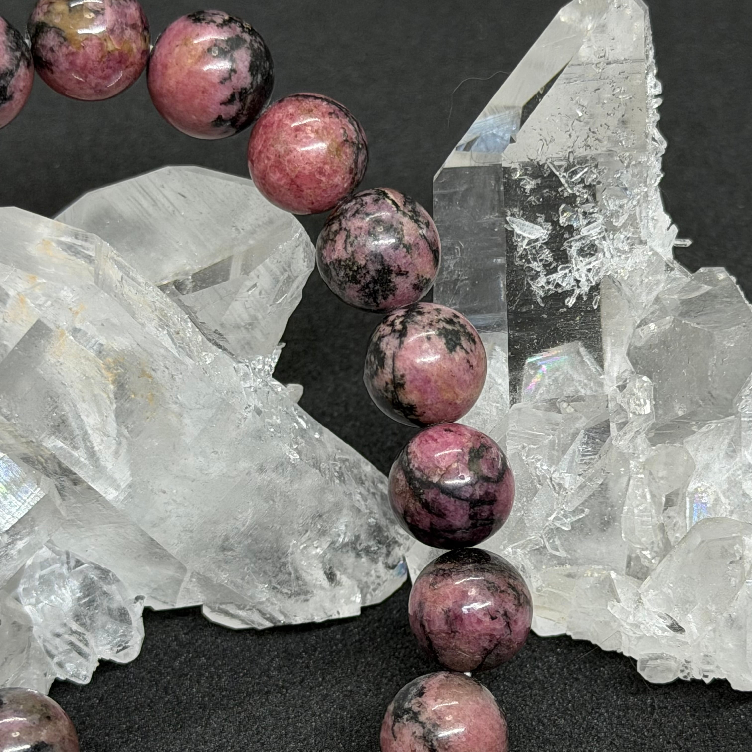 希少で産出量が少なく、なかなか手にすることの難しい国産パワーストーンですが、今回はそのラブシリカの中でもピンク色が濃いめの石を、10㎜玉で揃えブレスにしています。