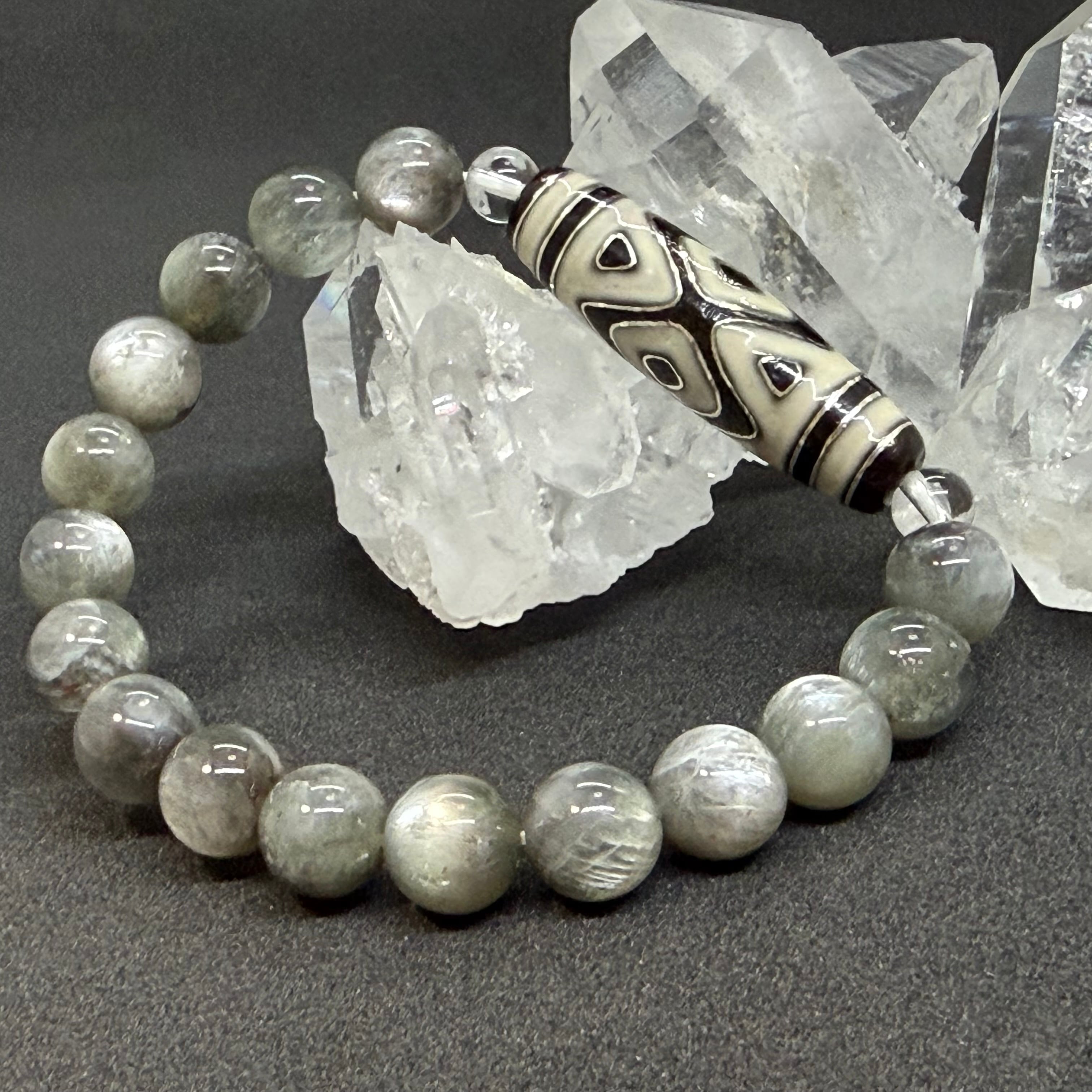そんな天珠をブラックシルバーサンストーンで組み上げました。